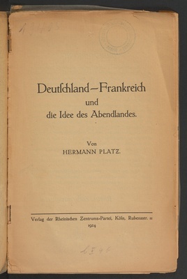 Deutschland - Frankreich und die Idee des Abendlandes / Hermann Platz