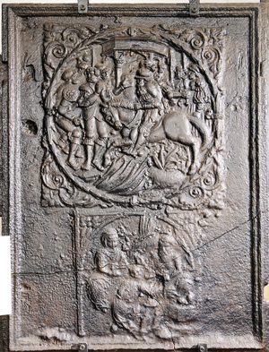 Takenplatte oder Kaminplatte mit Heiligenfiguren