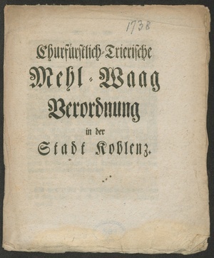 Churfürstlich-Trierische Mehl-Waag Verordnung in der Stadt Koblenz / [Franz Georg Erzbischof von Trier. Ex Mandato Th. Math. Syré]