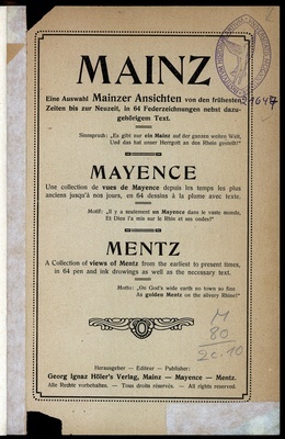 Mainz : eine Auswahl Mainzer Ansichten von den frühesten Zeiten bis zur Neuzeit ; in 64 Federzeichnungen nebst dazugehörigem Text