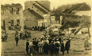 "Wohlfahrts-Postkarte: Marktplatz in Domnau"