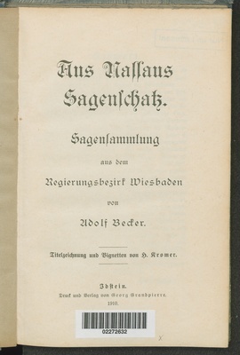 Aus Nassaus Sagenschatz : Sagensammlung aus dem Regierungsbezirk Wiesbaden / von Adolf Becker