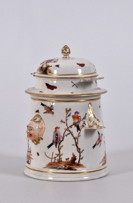 Réchaud mit bunten Vögeln (Nachtlampe mit Bouillon-Kümpchen)